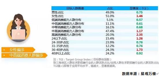 ▌珠三角求職招聘人群畫(huà)像:中高端消費(fèi)能力的女性,關(guān)注生活、購(gòu)物有風(fēng)格