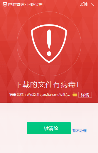 (圖:騰訊電腦管家攔截并查殺該病毒)