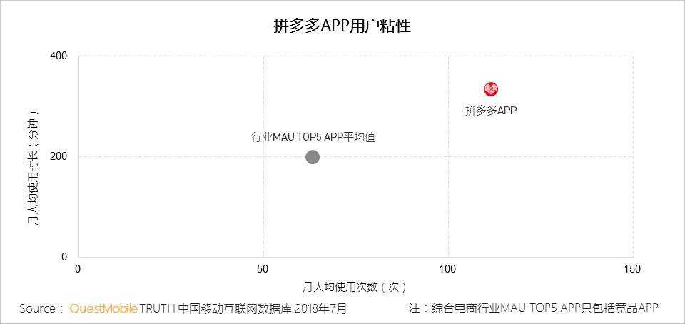 QuestMobile數(shù)據(jù)顯示,拼多多已形成搜索-篩選-分享-購買的消費(fèi)場景,使用粘性優(yōu)于行業(yè)整體水平。