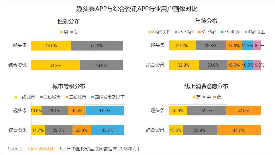趣頭條用戶分布在更下沉城市區(qū)域,線上消費(fèi)意愿較高,女性用戶更突出