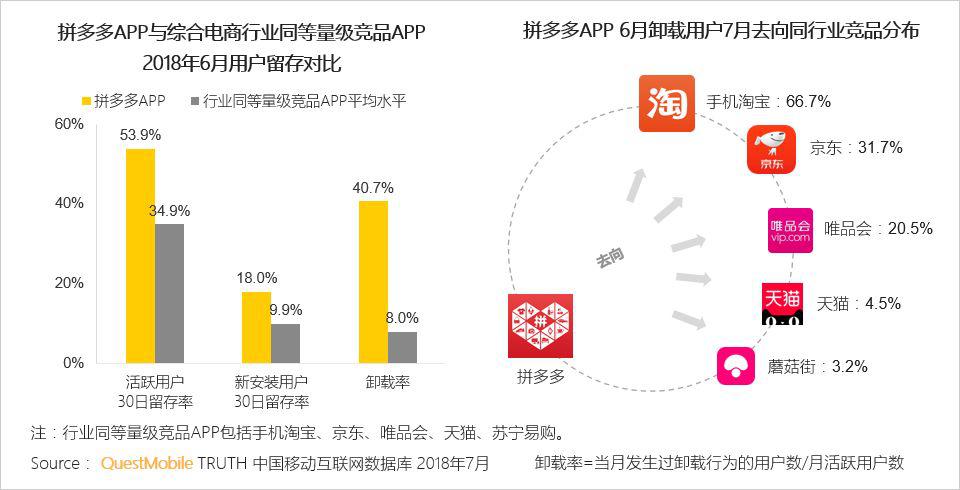 #p#分頁標(biāo)題#e#拼多多用戶呈現(xiàn)耐人尋味的高留存高卸載特征