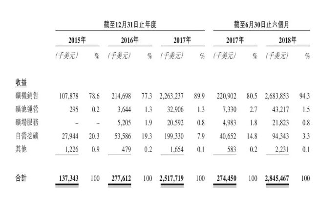 數(shù)字貨幣是虛擬資產(chǎn),受行情影響波動巨大,很難令投資人有確定盈利的信心。而礦機卻是實體資產(chǎn),據(jù)比特大陸招股書披露,比特大陸在2015年、2016年、2017年及2018年前6個月的礦機銷售營收,分別為1078萬美元、2146萬美元、2.26億美元、2.68億美元,呈現(xiàn)逐年走高的趨勢。