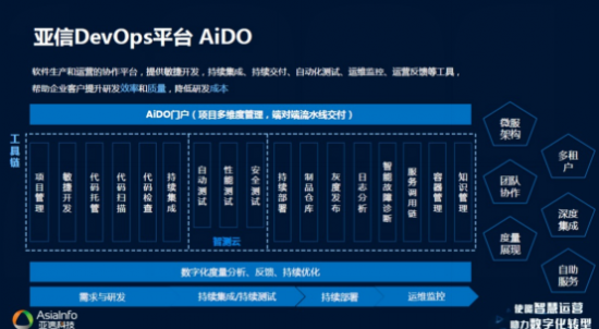 在本次大會,亞信科技還在展位展示了一站式DevOps平臺AiDO。簡單來說,一站式DevOps平臺AiDO軟件開發(fā)與運維協作平臺,面向行業(yè)客戶提供敏捷開發(fā)、持續(xù)集成、持續(xù)交付、自動化測試、運維監(jiān)控、數據度量和反饋等工具。還有滿足多樣計費需求的 AISWare Billing和可實現客戶管理、智能營銷的AISWare CRM,以及從終端、到移動、到云的全面安全技術。