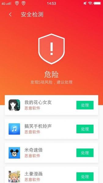 其二,大家可以借助專業(yè)的手機安全軟件,如騰訊手機管家進行防護。在手機使用的過程中,大家可使用騰訊手機管家定期給手機進行體檢和病毒查殺,并及時更新病毒庫,實時檢測手機設(shè)備的網(wǎng)絡(luò)環(huán)境、系統(tǒng)漏洞、病毒木馬、支付環(huán)境、賬號保護、隱私保護等方面的安全。當(dāng)用戶不小心下載病毒軟件時,騰訊手機管家會進行風(fēng)險項提醒,阻止用戶時停止安裝操作,避免手機被植入木馬病毒。