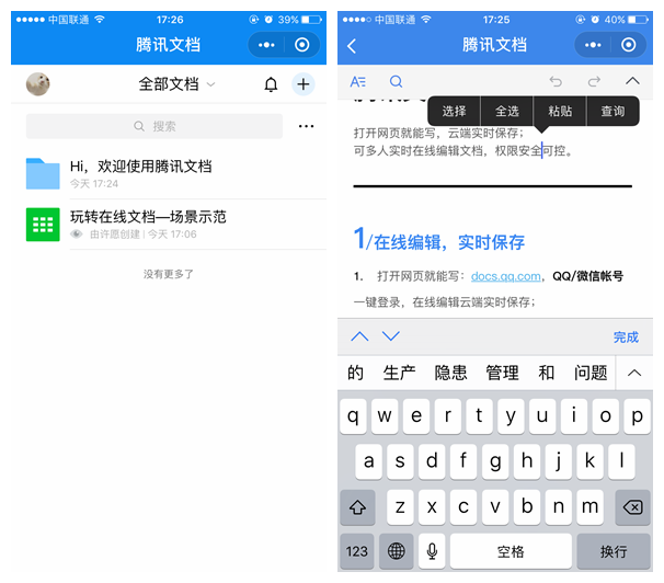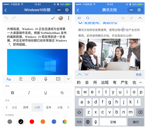 ▲左邊是WPS文檔,右邊是騰訊文檔