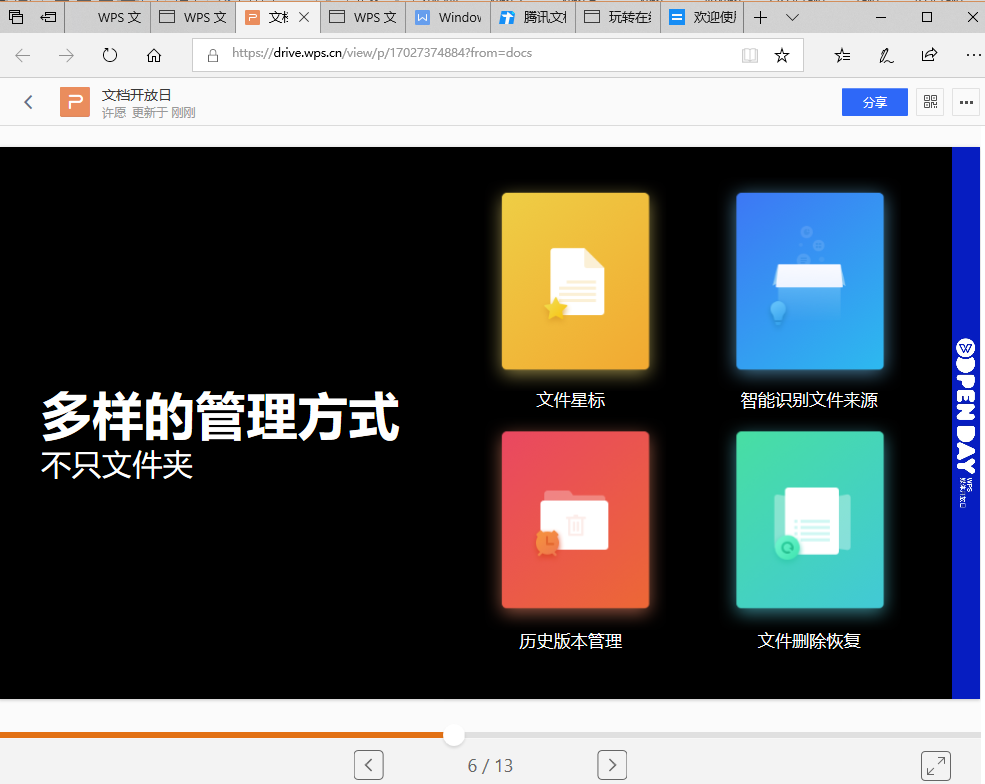 從以上簡單的比較中,也可以看出騰訊文檔目前缺失了重要的PPT查看功能,在線文檔只支持Word和Excel,另外在其他功能上擴(kuò)展上也沒有很好地輔助文檔的操作。