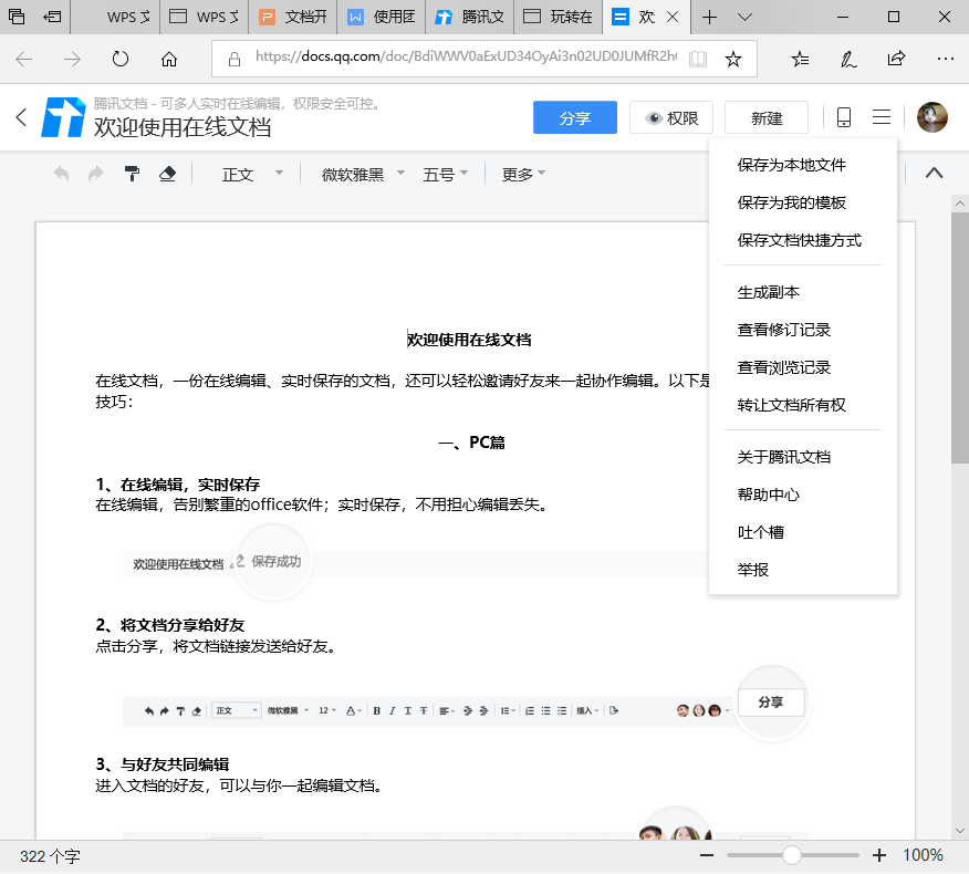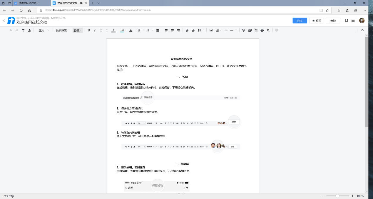 作為在線協(xié)作辦公軟件,WPS文檔、騰訊文檔都支持在線使用,特別是在PC電腦、筆記本的網(wǎng)頁端上,支持無需安裝客戶端使用,通過打開分享在線文檔進(jìn)行跨平臺的多人協(xié)作,同時能夠?qū)崿F(xiàn)實時保存、離線編輯、分享好友、權(quán)限管理控制、在線模板、高亮協(xié)作內(nèi)容等等。