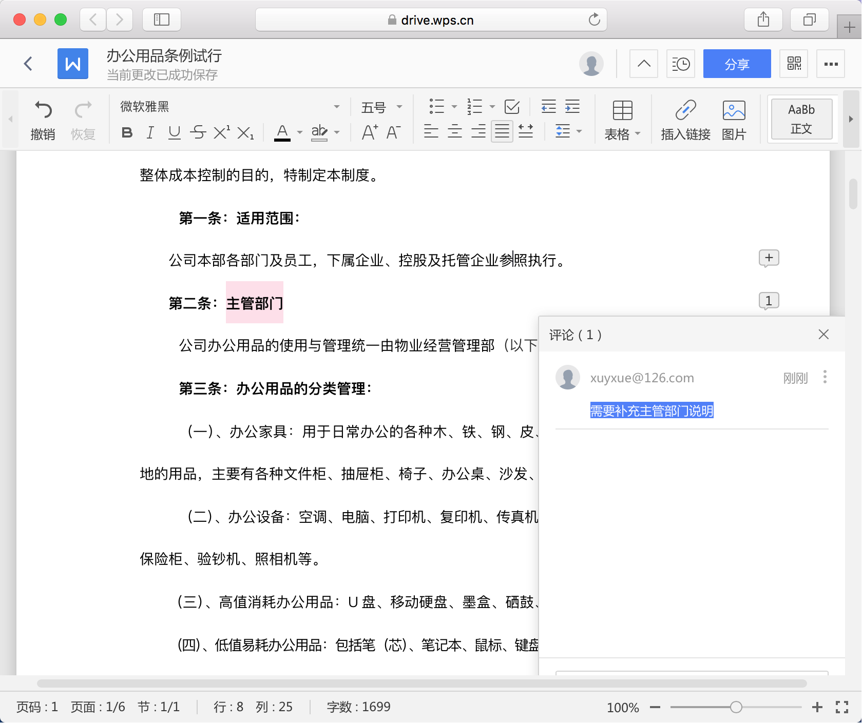 WPS文檔上面的確體現(xiàn)了WPS上的一些特性,雖然是在線協(xié)作Office 辦公,但是整體的功能豐富性已經(jīng)很全面,再加上無縫集成了WPS 2019等本地客戶端操作,可以說整個辦公體驗是十分流暢的。