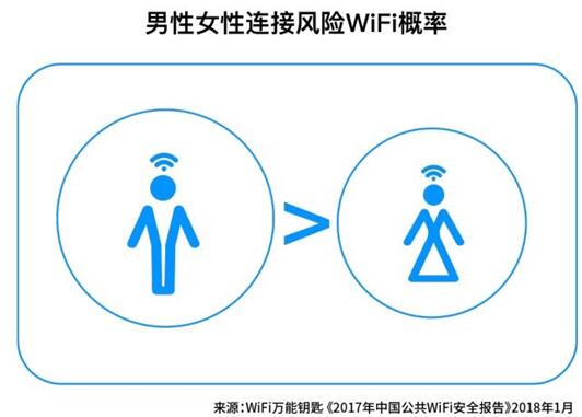在性別方面,男性用戶連接風(fēng)險WiFi的概率略高于女性用戶。