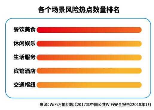4.2 風(fēng)險WiFi中餐飲美食類熱點占比最高