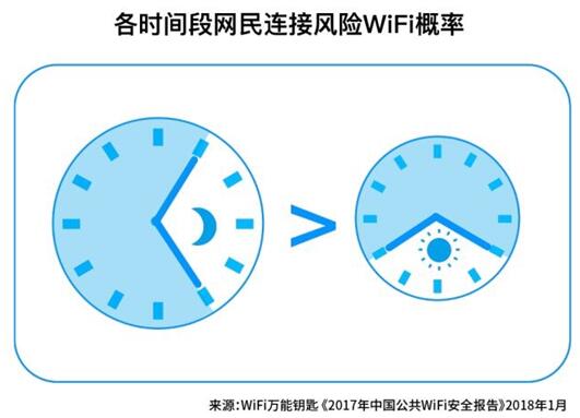 全天24小時,用戶連接風(fēng)險WiFi更容易發(fā)生在夜晚時段。