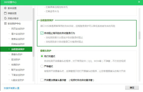 針對弱口令爆破攻擊手段,360安全衛(wèi)士專門為服務(wù)器系統(tǒng)提供了遠程登錄保護功能,可以自動攔截高風(fēng)險的遠程登錄行為,包括首次從陌生IP登錄,以及多次登錄口令錯誤情況,都能夠?qū)⑵渥柚?,從而避免?shù)據(jù)被GlobeImposter等病毒加密勒索。