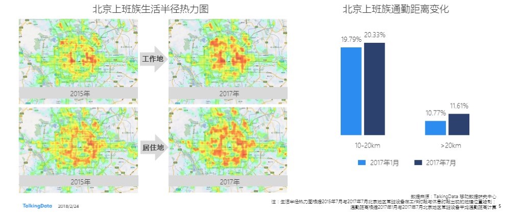通過(guò)分析北京地區(qū)上班族的活動(dòng)范圍,可以觀察到現(xiàn)代人在城市中的生活半徑在擴(kuò)大,長(zhǎng)距離通勤的人群比例在增加,都市生活愈加繁忙,人們對(duì)于生活、交通便捷性的需求值得被關(guān)注。