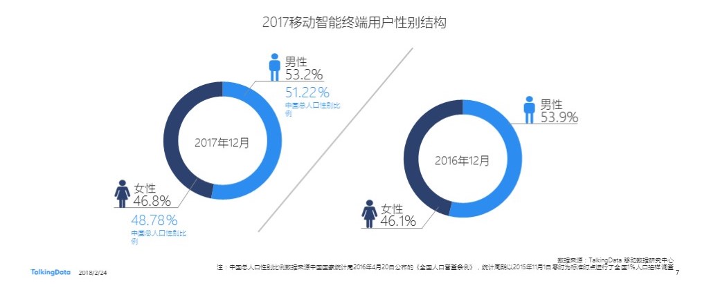 2017年,隨著移動(dòng)智能終端用戶(hù)趨于飽和,移動(dòng)智能終端用戶(hù)性別特征逐漸趨近人口學(xué)特征,預(yù)計(jì)2018年中國(guó)智能終端用戶(hù)中男性用戶(hù)占比將會(huì)下降至52.5%。#p#分頁(yè)標(biāo)題#e#