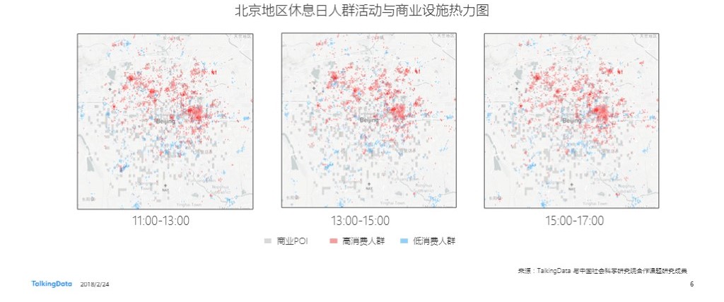 通過(guò)分析北京地區(qū)高消費(fèi)與低消費(fèi)人群利用商業(yè)設(shè)施的狀況發(fā)現(xiàn),雖然北京不同區(qū)域的商業(yè)設(shè)施配置和分布相對(duì)均衡,但兩個(gè)群體對(duì)設(shè)施的利用在時(shí)間和空間上卻鮮少重合。
