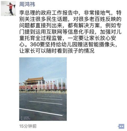 對此,全國政協(xié)委員、360公司董事長周鴻祎頗有感觸。他隨即在朋友圈中表示:360此前向全國幼兒園免費(fèi)贈送智能攝像頭,幫助家長能在手機(jī)上隨時查看孩子的情況,并且還會將這項行動堅持下去。