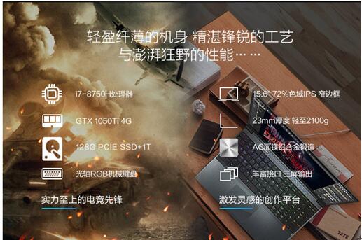 與GTX1060版相比僅僅是顯卡配置的不同,8G DDR4內(nèi)存、128G固態(tài)加1T機械硬盤、6mm超窄邊框15.6寸72%色域IPS屏、薄至19mm的輕薄機身、光軸RGB機械鍵盤一應俱全。而且同樣完美支持三屏輸出功能,讓玩家可以非常便利地接入擴展屏幕,享受升級的影音娛樂。#p#分頁標題#e#