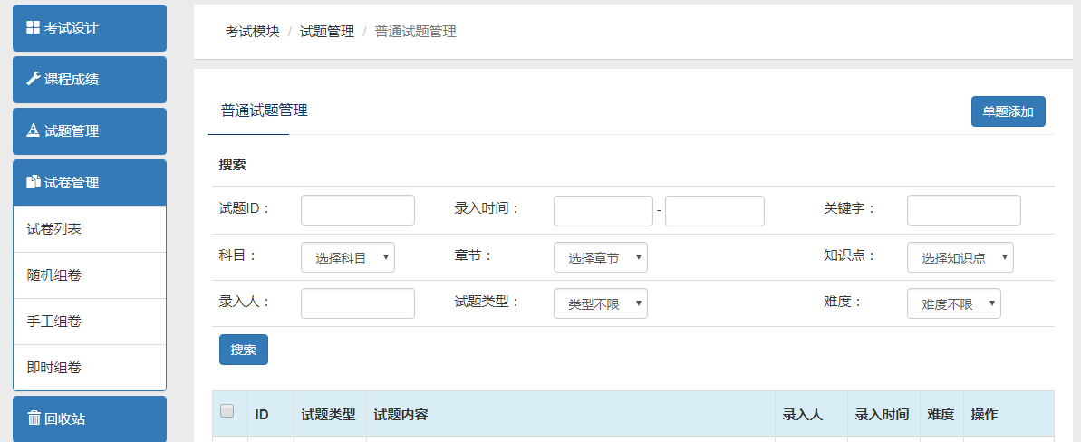 試題管理:添加考試題目,題目類型管理,分為普通試題和題帽類型試題